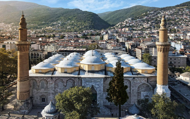 La Grande Mosquée (Ulu Cami), le marché de la soie (Koza Han), la Mosquée verte et le Mausolée vert, le quartier ottoman « Yeşil », et les mausolées d’Osman Bey et Orhan.